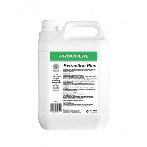 Professional low foam cleaning concentrate for carpet soil extraction machines. New and improved formula with pH boosters and optical brighteners. Clear and stable at high temperatures with anti-resoiling formula. pH 9.5. Dilution 1 to 100.